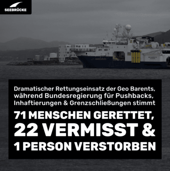 Unsere Gedanken sind bei den Angehörigen und Freund*innen der Vermissten und Verstorbenen und bei allen Betroffenen. Wir sind voller Wut, dass Europa bewusst weiter Menschen im Mittelmeer ertrinken lässt. Mit genug politischem Willen wäre es möglich, sichere Fluchtwege und eine flächendeckende, staatliche Seenotrettungsmission zu schaffen - stattdessen stimmte die Bundesregierung erst vor kurzem Pushbacks, Inhaftierungen und Grenzschließungen auf EU-Ebene zu und bricht lieber den eigenen Koalitionsvertrag, als sich menschenrechtskonform zu verhalten. Wir fordern: Sichere Fluchtwege und eine flächendeckende, staatliche Seenotrettungsmission, JETZT!