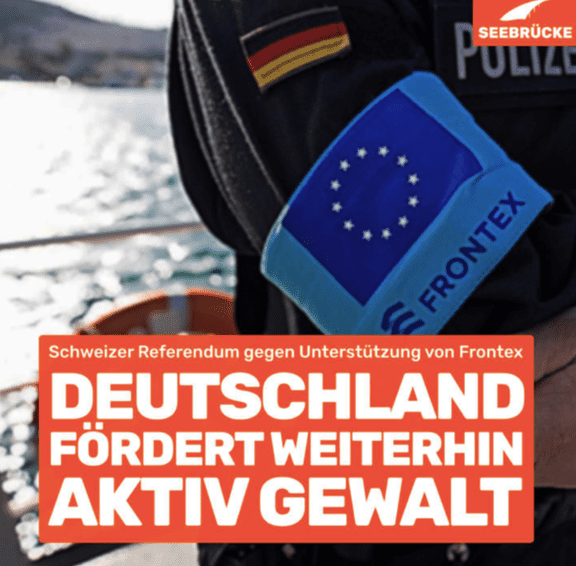 Während die meisten Staaten weiterhin materielle und personelle Unterstützung zusichern, gibt es auch Länder, die anfangen, dies zu hinterfragen: In der Schweiz wird es am 15. Mai ein Referendum geben, ob sie die Unterstützung für Frontex beenden. Dabei geht es nicht nur um Equipment und Personal, sondern auch um 61 Millionen Schweizer Franken jährlich. Wir fordern, dass auch Deutschland sich endlich entscheidet, sich nicht weiter aktiv an dieser Gewalt zu beteiligen und die Unterstützung von Frontex durch Equipment und Personal einstellt!