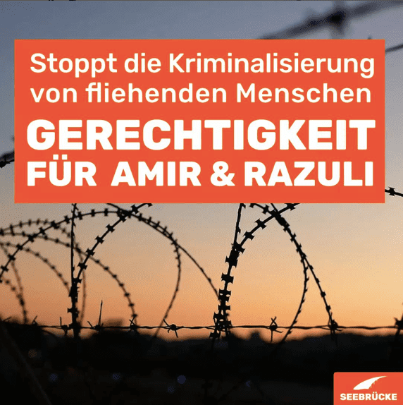 So wie Amir und Razuli geht es vielen weiteren geflüchteten Menschen, die fortlaufend kriminalisiert werden - oft von der breiten Öffentlichkeit völlig unbemerkt. Wir stehen solidarisch an der Seite aller, die für ihre Flucht kriminalisiert werden. Es braucht endlich sichere und legale Fluchtwege! Wir fordern Freiheit und Gerechtigkeit für Amir und Razuli!