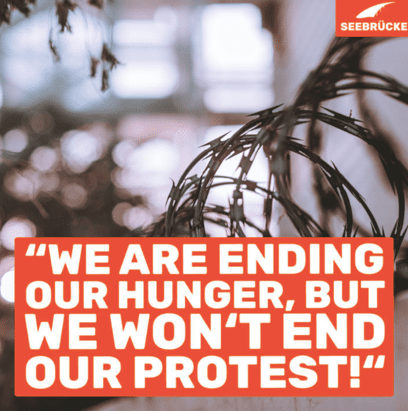 Nach 35 Tagen schreiben die Überlebenden „Wir beenden unseren Hunger, aber nicht unseren Protest. Wir haben gesehen, dass die Grenzsoldaten uns tot wollen - so hätten sie weniger Aufwand mit unseren Körpern als lebendig.“