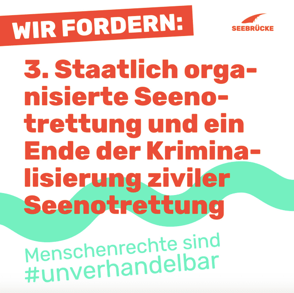 - Staatlich organisierte Seenotrettung und ein Ende der Kriminalisierung ziviler Seenotrettung