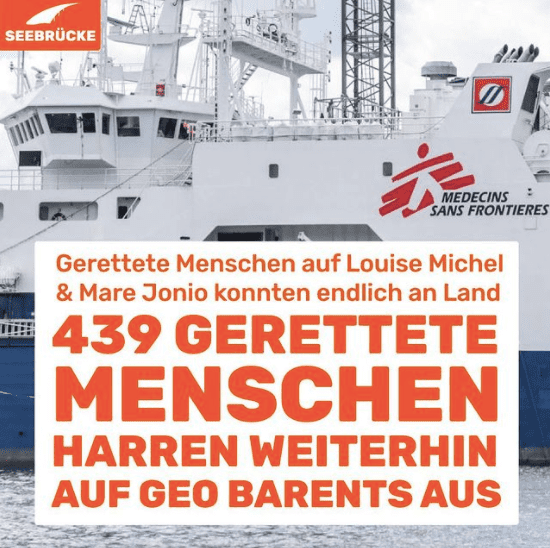 Wir fordern die europäischen Behörden auf: Sicherer Hafen für die Geo Barents, jetzt! Rettung aus Seenot ist dann beendet, wenn auch der letzte Mensch sicher an Land ist.