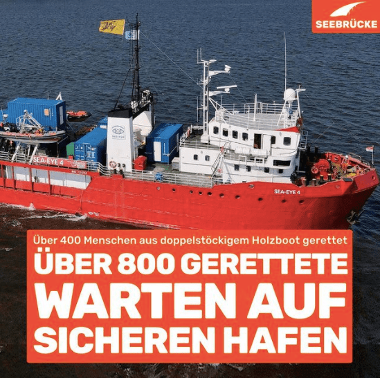 Über 800 Menschen auf der Sea-Eye 4 brauchen nun umgehend einen sicheren Hafen! Dabei darf die deutsche Regierung nicht aus der Verantwortung genommen werden: Solidarität bedeutet eine Aufnahmezusage! Und außerdem: Flächendeckende, europäisch finanzierte Seenotrettung ist dringend nötig, das zeigen die letzten Tage auf dem Mittelmeer deutlich.