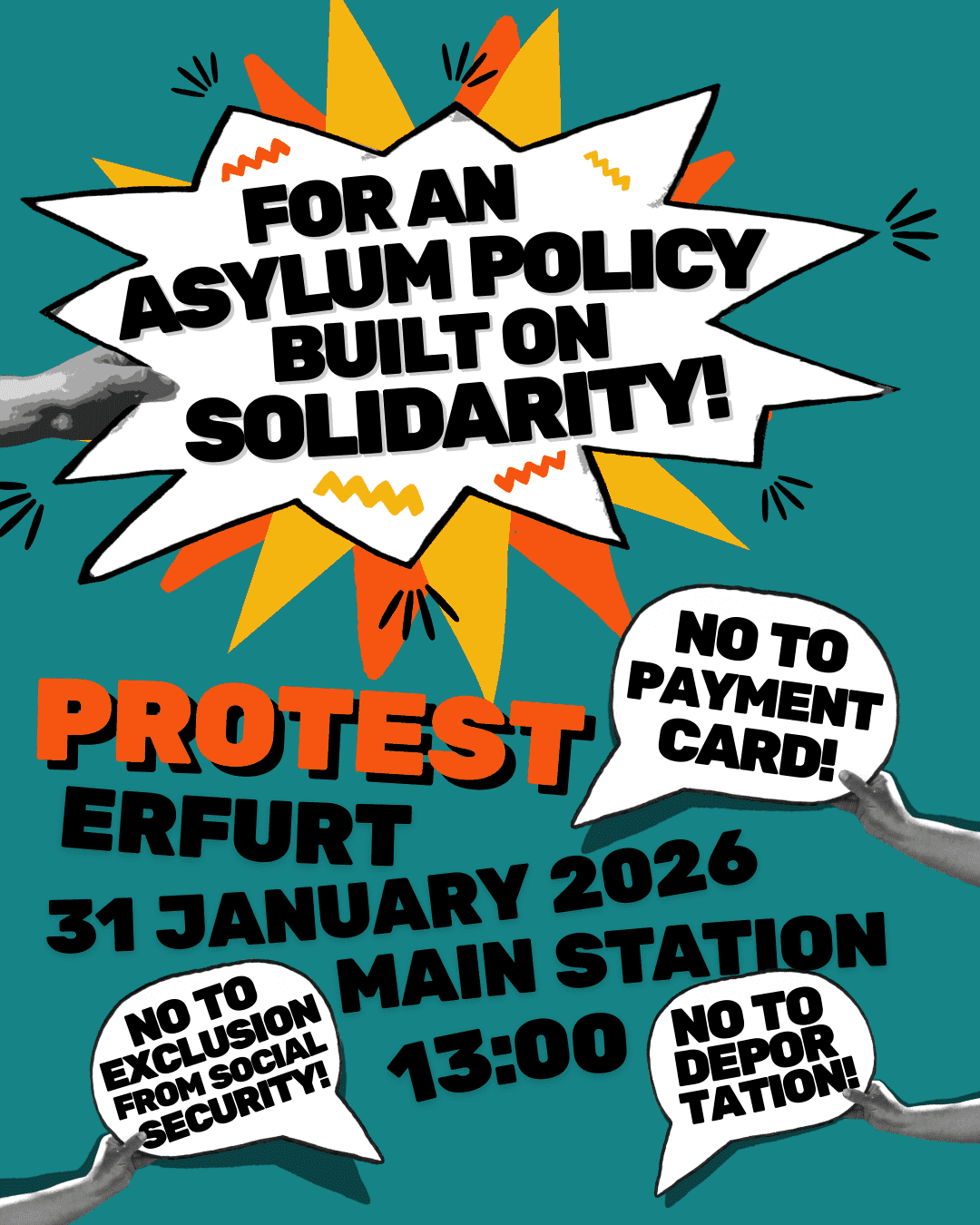 31.01.2026 13:00 UhrErfurt main station, Willy-Brandt-Platz 12CALL FOR PROTEST ON 31 JANUARY 2026 IN ERFURT