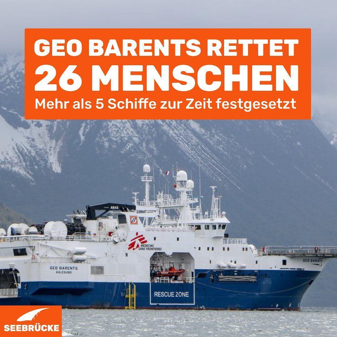 - https://mobile.twitter.com/msf_de - 11.06.2021·News - Geo Barents rettet 26 Menschen- Während mehr als 5 Rettungsschiffe aktuell festgesetzt sind, konnte die Geo Barents 26 Menschen aus Seenot retten, darunter 15 unbegleitete Minderjährige. Während der Rettung wurde die Crew durch die …