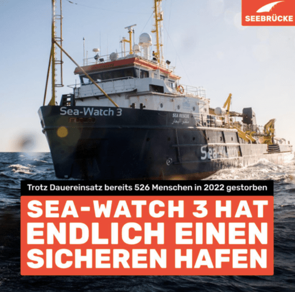 Gute Nachrichten! Die Sea-Watch 3 hat nach Tagen des Wartens endlich einen sicheren Hafen zugewiesen bekommen. Auch 2022 zeigt sich, dass zivile Seenotrettungsorganisationen essentiell sind, um Mensch…