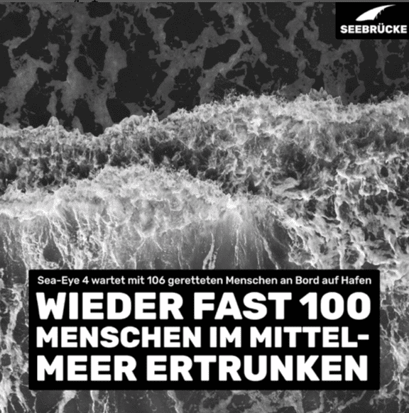 04.04.2022·News Sea-Eye 4 wartet mit 106 Menschen auf sicheren Hafen, wieder fast 100 Menschen im Mittelmeer ertrunken